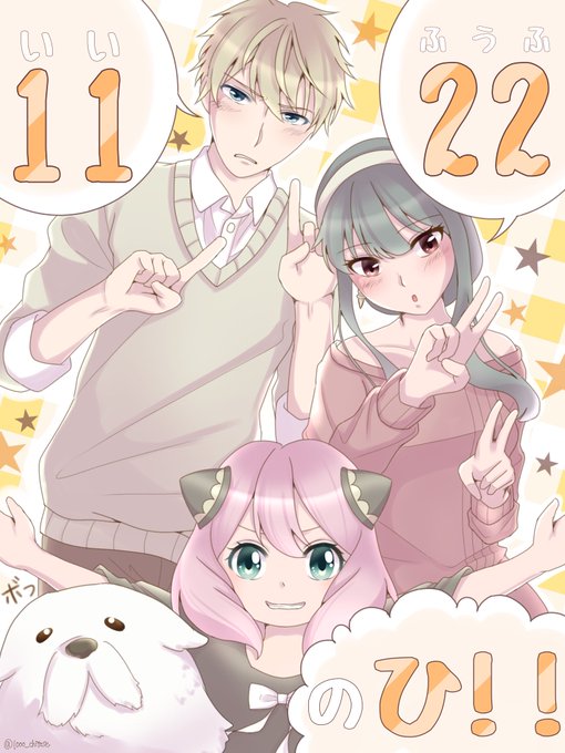 フォージャー家で #いい夫婦の日👨👩👧 #スパイファミリー #SPY_FAMILY #ロイヨル #ロイド #ヨル #アーニャ #ボンド #絵描きさんフォロバ100 #絵描きさんと繋がりたい #イラスト好きな人と繋がりたい