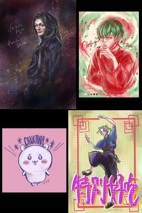 #今月描いた絵を晒そう タグ絵と落書きも含めてだけど、 なんと一月で4枚も絵を描いたのは垢作ってから初めてな気がするんだ!! 今月はこのタグやる人権、あるよね…!!!! ちーキャワは最近どハマりしてて描けるか試してみたやつw(バランスとるの本当に無理だった😭難しい😭)
