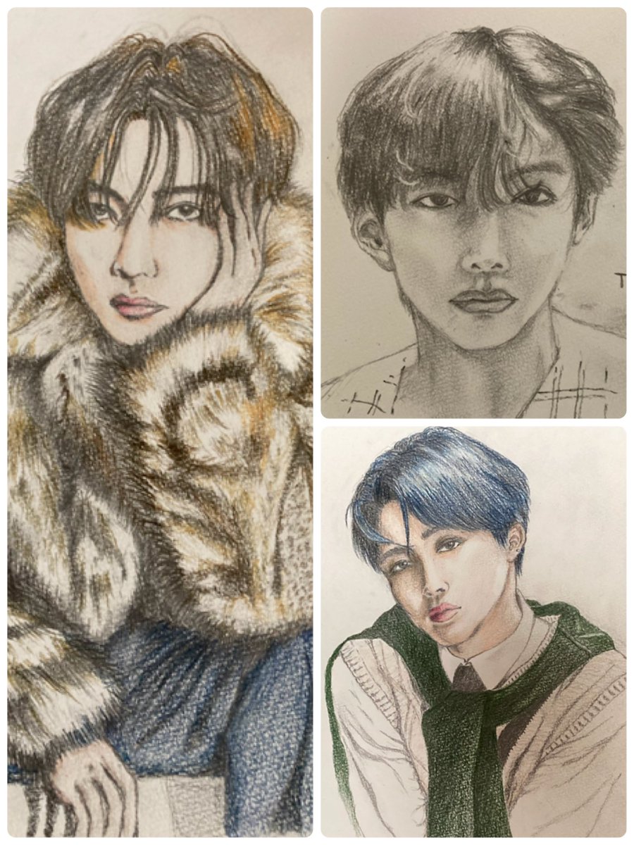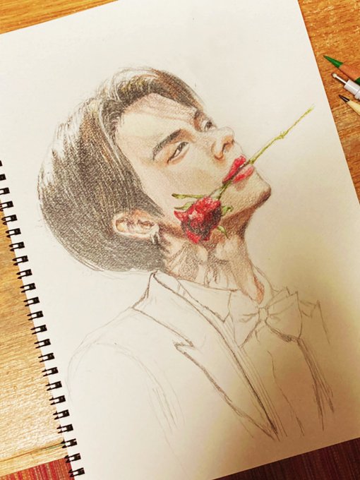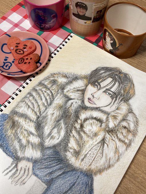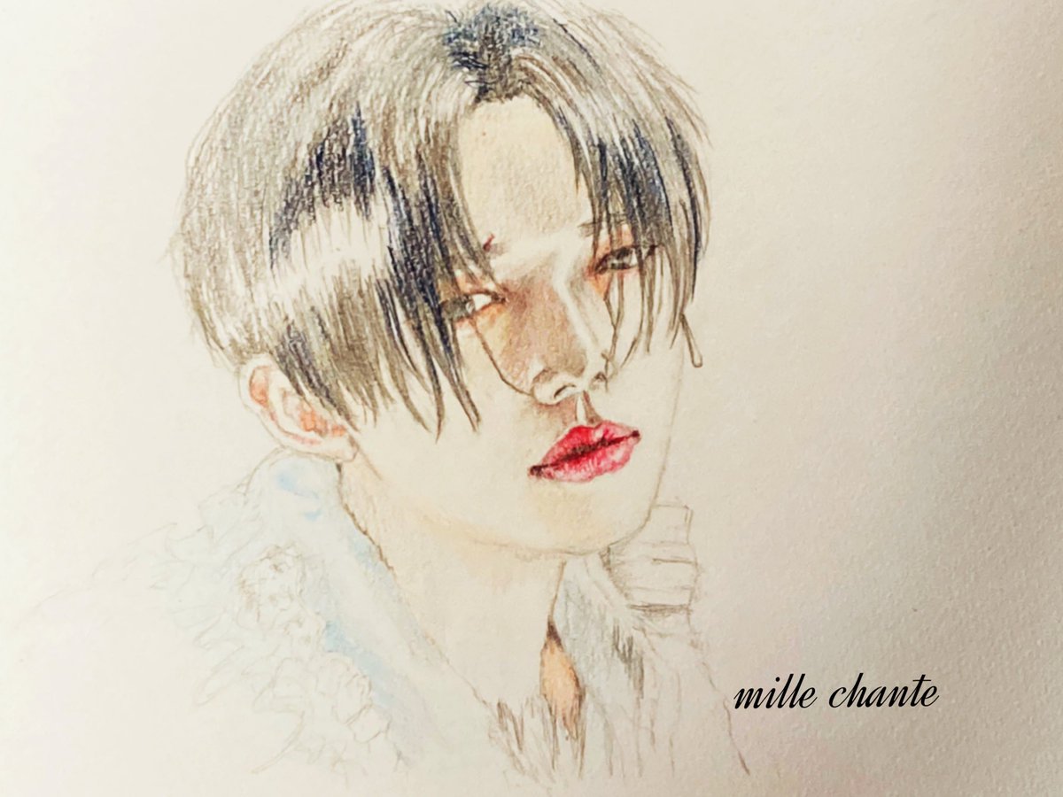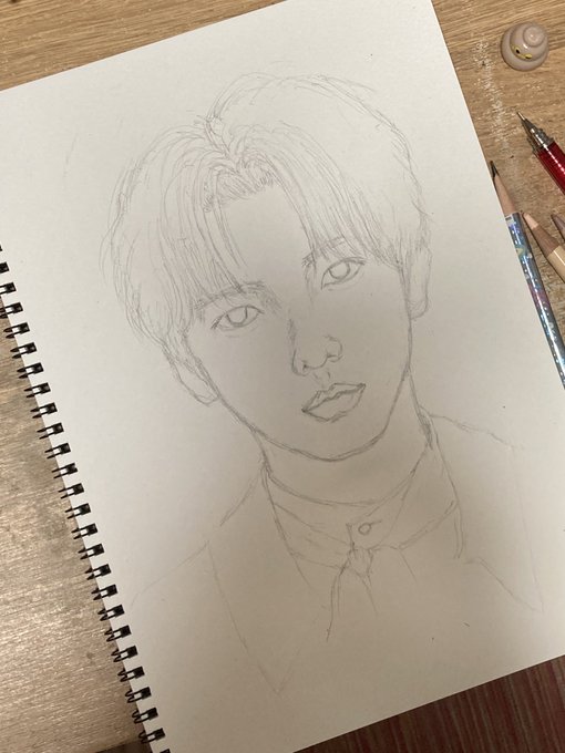 今日仕事休みやったので、限界に挑戦しているドMです🤗 あと2人…!!! 今🐿下絵終わった。 4日中には5人全員描きあげる!!! 3周年ツイは5人揃ったらしよう… #txtfanart #TOMORROW_X_TOGETHER #イラスト #色鉛筆画