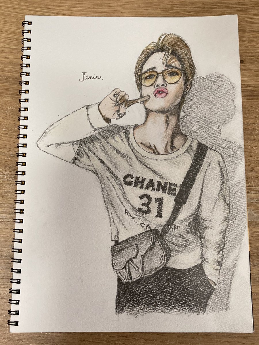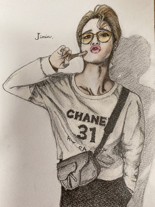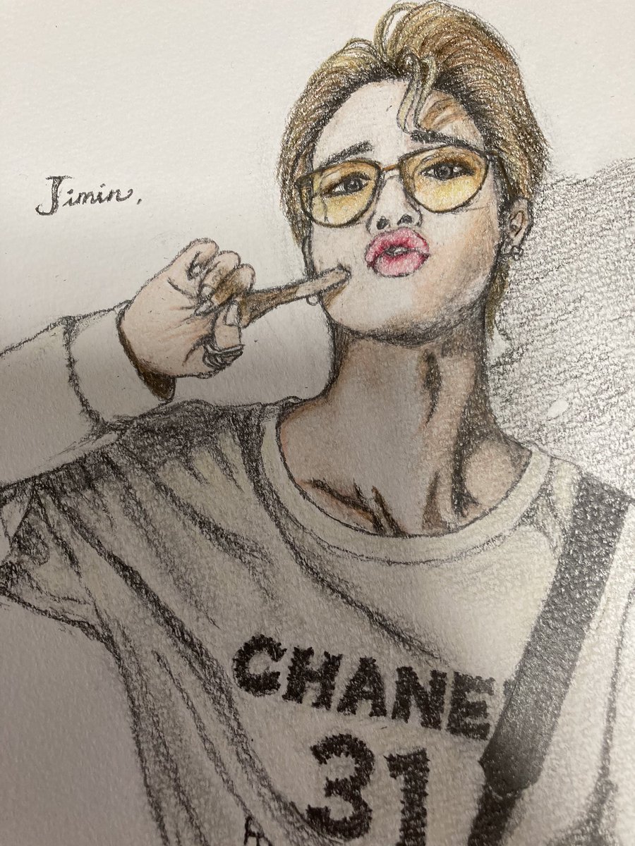 ジミンちゃん完成しましたー❤️ ちむちむさーん@jimin7omochi お待たせー💗😆完成しましたぁ♫ ジミンペンのツンデレ娘(9歳)も褒めてくれました!笑 #btsfanart #JIMIN #kpopfanart #BTS