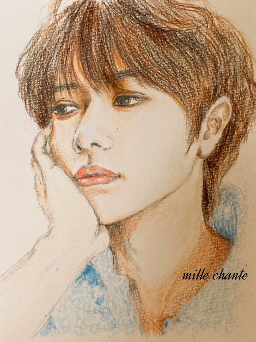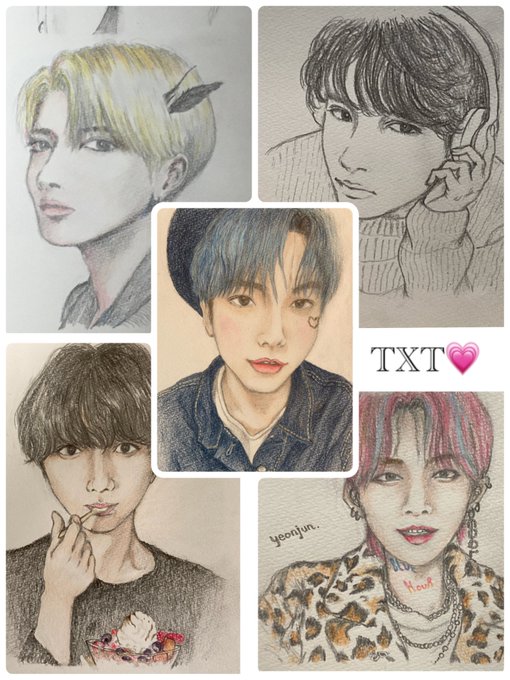 ギリギリ😂💦今日マンネズ描いて、なんとか5人描けた〜! 3周年のお祝いに?謎の早描き挑戦を自分に課したけど😂💦 大好きなとぅば1人1人と向かい合って、想いを込めて描けたと思う🥰幸せな時間でした❤️ #TXTfanart #TOMORROW_X_TOGETHER #kpopfanart #イラスト #色鉛筆画