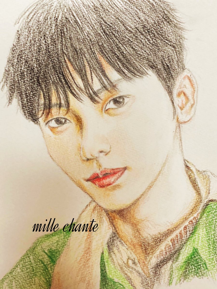 やっと… 描き終わって… 加工して… センイル画… 送ってきた… (ο_ _)ο=Зバタッ #txtfanart #TOMORROW_X_TOGETHER #SOOBIN #Chaotic_Wonderland #kpopfanart #イラスト #色鉛筆画