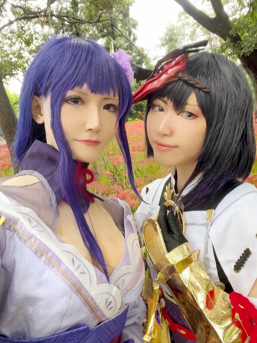 5 27 【※コス写メ】 遅報ですが、やいちゃん、日記人さんと早朝彼岸花ロケしてきました!久々のコスで色々と迷走してたけど、前日入りしたりお泊まりしたりロケしたりで楽しかった〜🙌✨彼岸花もたくさん咲いてて綺麗だった✨2人ともお疲れ様でした! #原神cos #麗yers 22/09/25 08:03