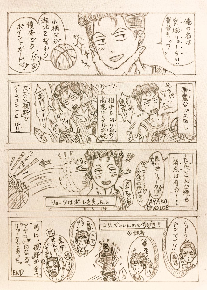 #スラムダンクファンアート #スラムダンク 今週末公開の🎥スラムダンク🏀観に行く楽しみに心躍らせつつ、好きなキャラクターのリョータを主人公に、初✨4コマ作成しました❗️良かったら是非、読んでみて下さい☺️🙏💕(少々見づらい部分ありますが、すみません💦)