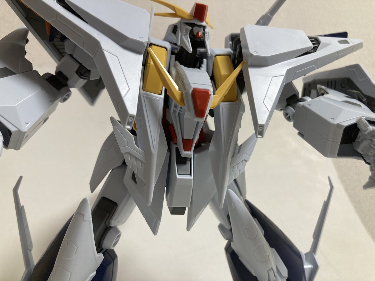 HGクシィーG完成〜 色分けもよく可動範囲がなんと言っても広い! 表情がつけやすくなっています ROBOT魂版を触ったことがあるのですが多分それより可動範囲は広いです 1部差し替えでフライト状態も再現可能となっています #ガンプラ #ガンプラプチレビュー