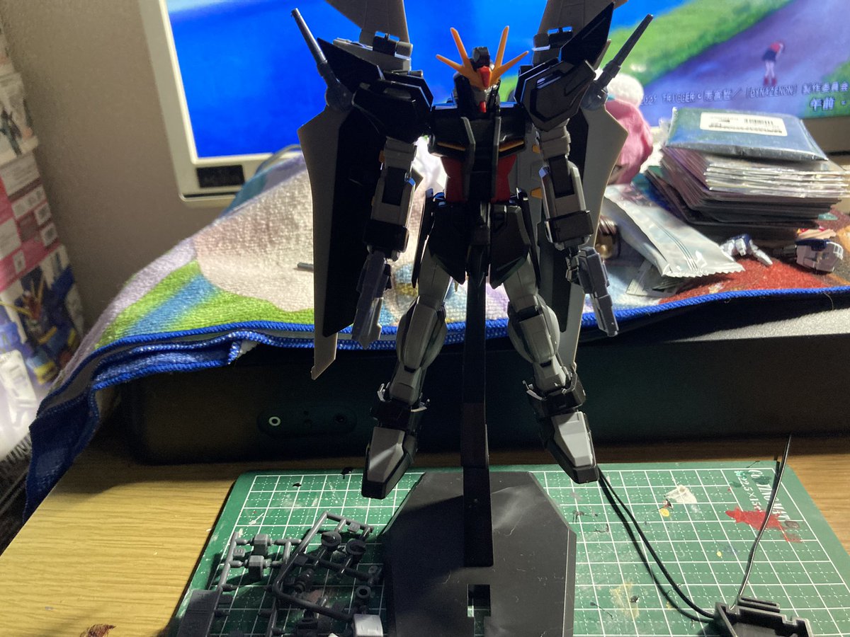 初版版HGストライクノワール完成! 色分けに関しては部分的にシールに頼りがちな部分もありますが基本カラーが単色は分結構いい感じのキットになっています 1部差し替えでアンカー射出状態再現可能となっていたりと振り幅広く遊べます #ガンプラ #ガンプラプチレビュー