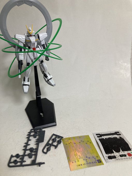HGスターゲイザー完成!!! 関節の1部にボールジョイントとABSが使われていて既に緩くなりつつあります笑 スターゲイザーと言えばビームエフェクトですがしっかりとデフォルトで付属しています シールはホイルシール、ホログラムシールの2種あり発行版再現可能です #ガンプラ #ガンプラプチレビュー