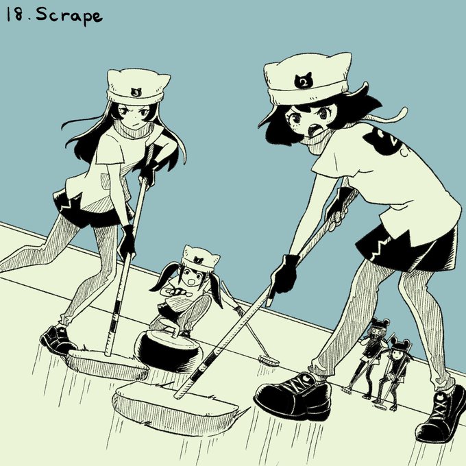 4 14 #inktober2022 Day18: Scrape / 擦る カーリング用語ではこの動きはスイープらしいがこまけえことァいいんだよ。 #Inktoberday18 #inktober 22/10/18 19:38