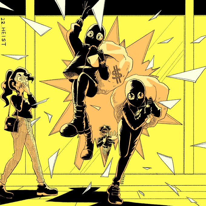 #inktober2022 Day22: heist / 強盗 昨日似たような絵を描いてしまったのでオールドスクール強盗です💰 #Inktoberday22 #inktober