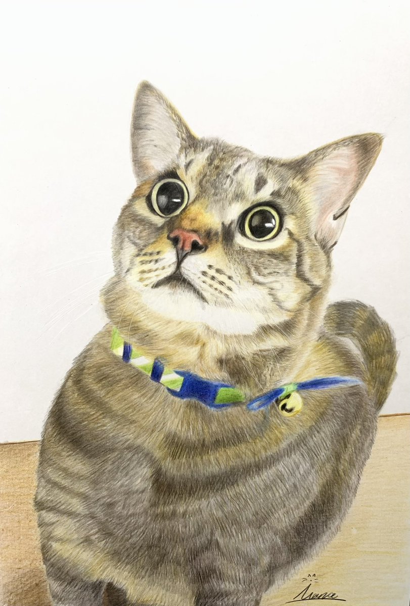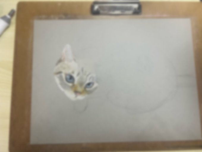 0 3 うんうん、いいお目目になってきた👀✨ ※少しぼかしてます #オーダー #猫 #色鉛筆 23/07/09 00:32