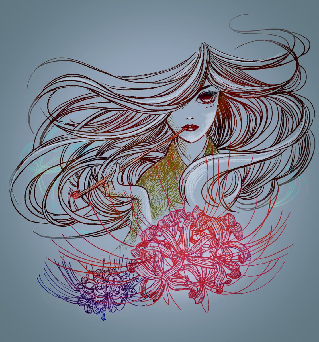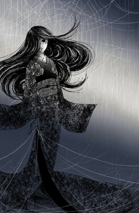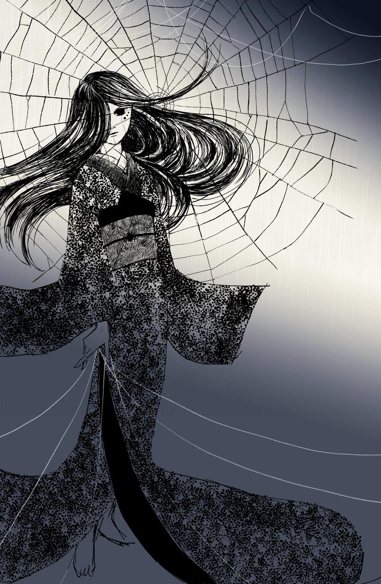 #pixiv今日のお題 #和服 昨夜 #PixsivSketch に🆙した②を今日少し修正①。明暗を綺麗に出せるようになりたいけど、バランスがよくわからない◑🙃環境によっても印象が全く変わるし🙃?¿ 蜘蛛女はオリキャラ「八雲」ちゃんとしてこれからも登場予定🎀🕷️🕸️✨RZさん@RZbeeeeにご協力頂きました💖🐝🧸💖
