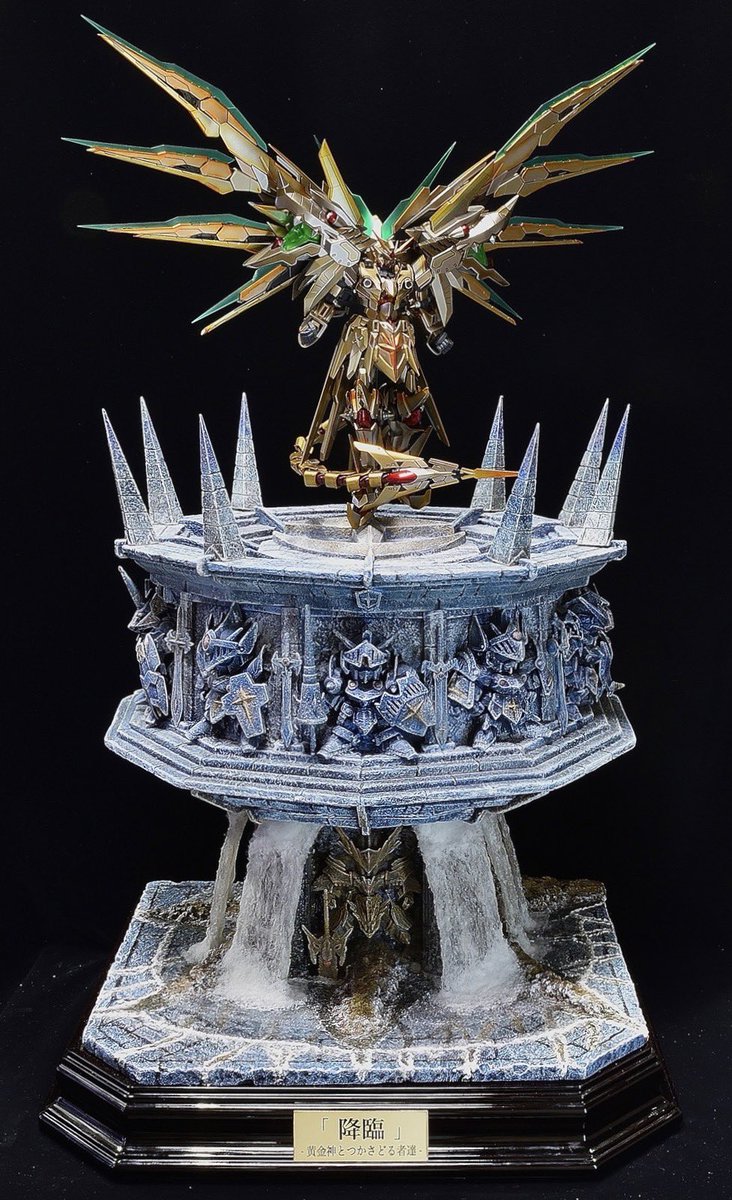 430 1250 「降臨」-黄金神とつかさどる者達- 完成しました🙋♂️ 先日のアーサーの滝と合体✨ 全長約80センチにパワーアップ🙋♂️ さらに 先日揃ったラクロア騎士団が参戦♩ スペシャル仕様になります✨ 12/11 ひめじsubかるで降臨です✨✨ 続きます #ひめじsubかる #リアルSD #SDガンダム外伝 #ガンプラ 22/12/02 20:07