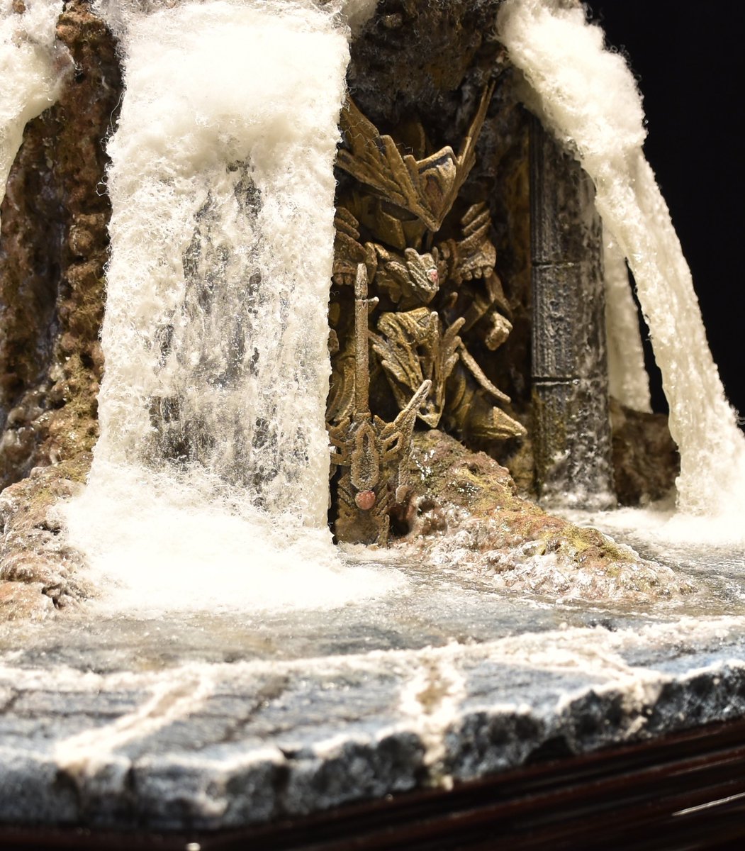 20 85 アーサーの滝の床と基部の木?岩?はスタイロフォームです♩ ある電動工具で加工するとなんとも言えない 質感が面白いです 神殿下部の新造部分スタイロフォームに似た素材の薄いスチロールを重ねて作りました やりたい事をすべて詰めて楽しく制作出来ました🙆♂️ 以上ご覧頂きありがとうございました🙇♂️ 22/12/02 20:17