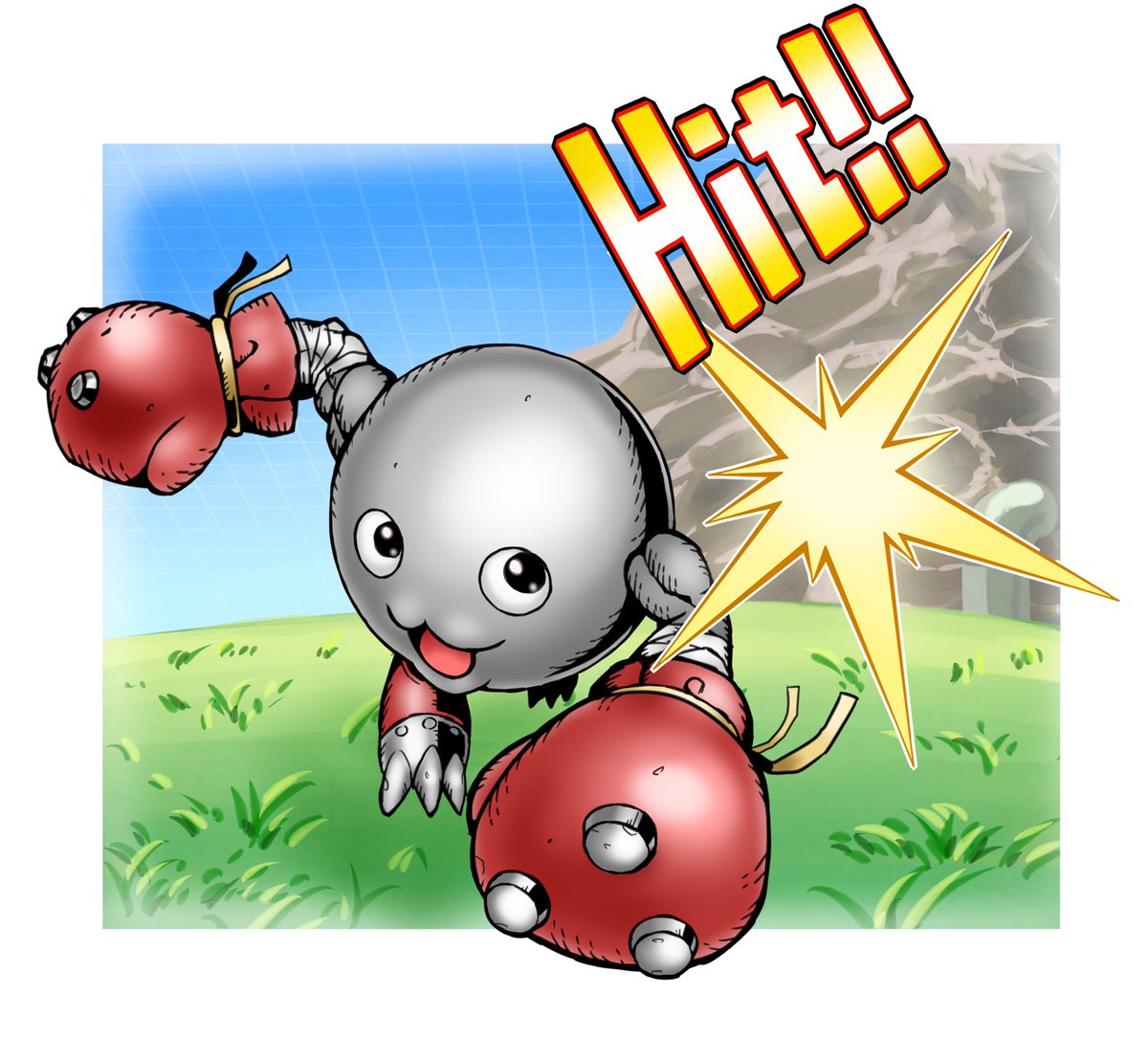 忍者ぽよ様(@ ppp_poyopoyo )の同人誌『熱血!デジモン学園 』にて描かせていただいた『バンチョーマメモン』とそのパートナー『大豆生田 健一』です。 BOOTHにて配布中なので、ご興味のある方は是非! thrid-party-free.booth.pm/items/4741272 #booth_pm