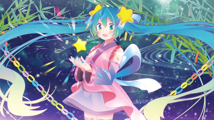 みんなのお願いごとを空に運ぶミクさん🎋🌠 #初音ミク