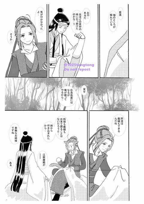 お題…食事 いつもありがとうございます 黙食なので兄上はしゃべりません 江澄は食べ終わったのでべらべらしています 兄上は江澄の腰と臀部をもう少し成長させて抱き心地が良くなれば良いなと思っています #曦澄ワンドロワンライ #曦澄