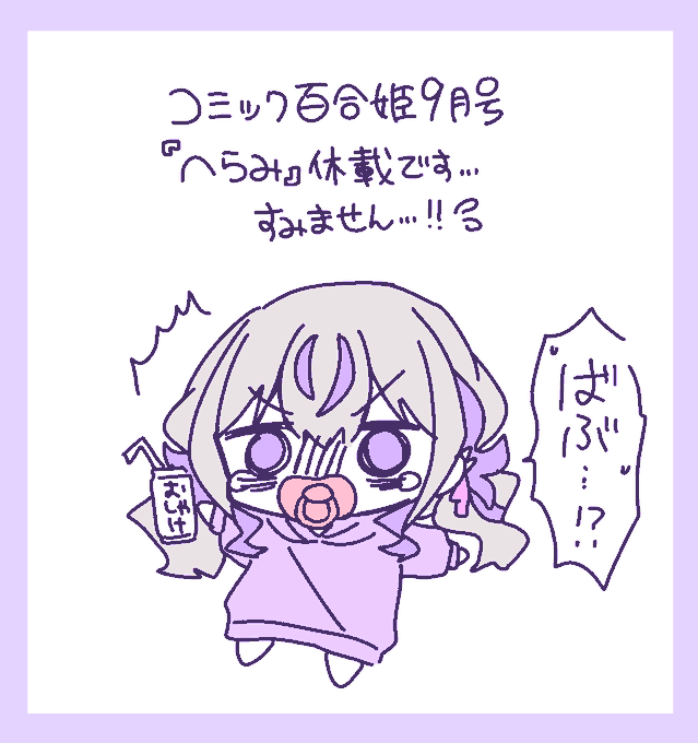 【おしらせ】 7/18(火)発売のコミック百合姫9月号、『平良深姉妹はどっちもヤんでる』は休載しております。すみません…!!次号は載りますのでよろしくお願いします🙇♂️