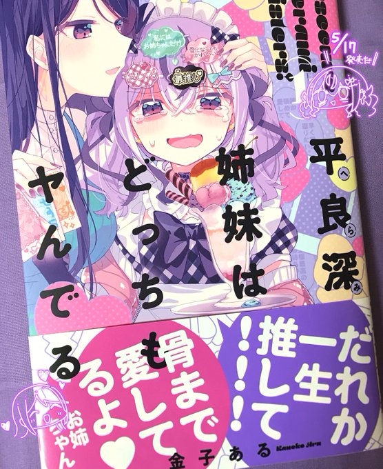 208 841 💜【平良深姉妹はどっちもヤんでる1巻書影】🎀 いつも通りなセラの表情が目印です。デザイナーさんと編集さんがとっっても可愛い装丁にして下さいました…!現物の色味もめちゃカワになっておりますので、ぜひお手に取って頂けたら嬉しいです!!!🙌5/17発売! 23/05/09 19:15