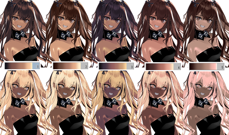 そういえば以前ツイートしたグラデをASSETSにアップしておりました無料配布です 黒髪+褐色肌、もしくは金髪(ストロベリーブロンド)+褐色肌キャラの髪と肌を一度に塗るのに便利なグラデーションマップのセットです 単なる焦茶→黄色系のグラデですが使えそうでしたら是非~ assets.clip-studio.com/ja-jp/detail?i…