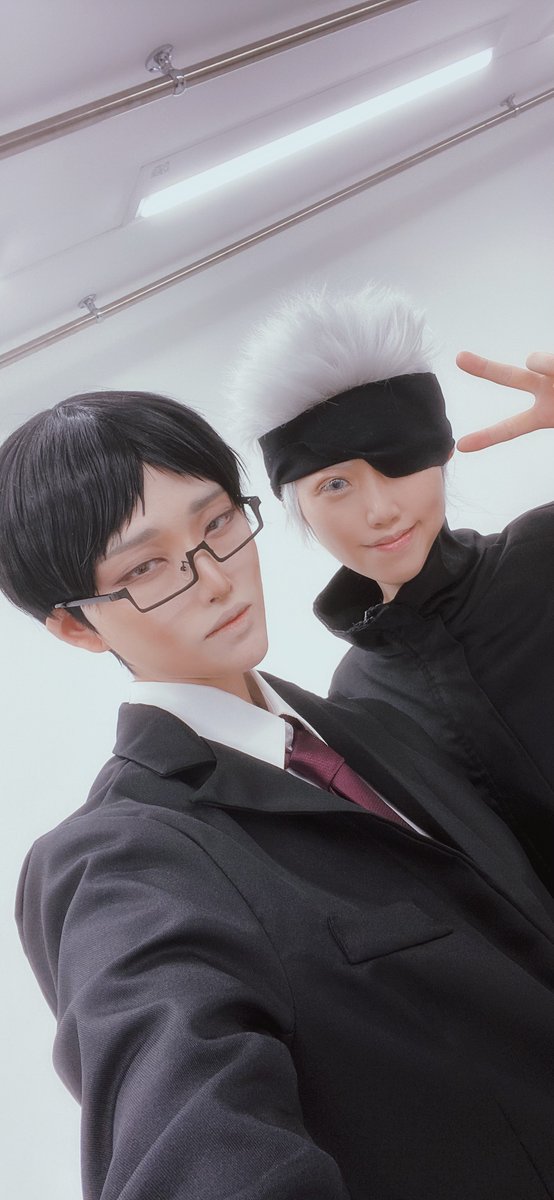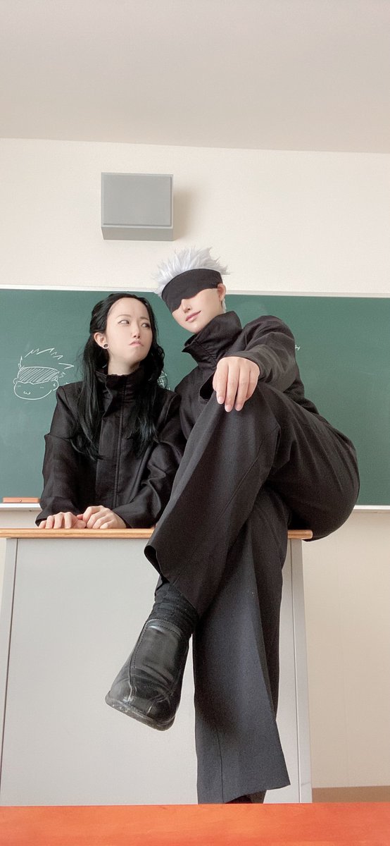 【コスプレ⚠️】 「その件に関してはまだ…五条さんには別件で…はい、それは…はい、はい…」 「ひぃ!すみません!!それは承知ですが…」 「すみませんすみませ…あれ、声が…二重に…」 1、2枚目📸&🤞🏻(脚):@kasugaharuna 3、4枚目📸:@MrCharnel #春菜photo
