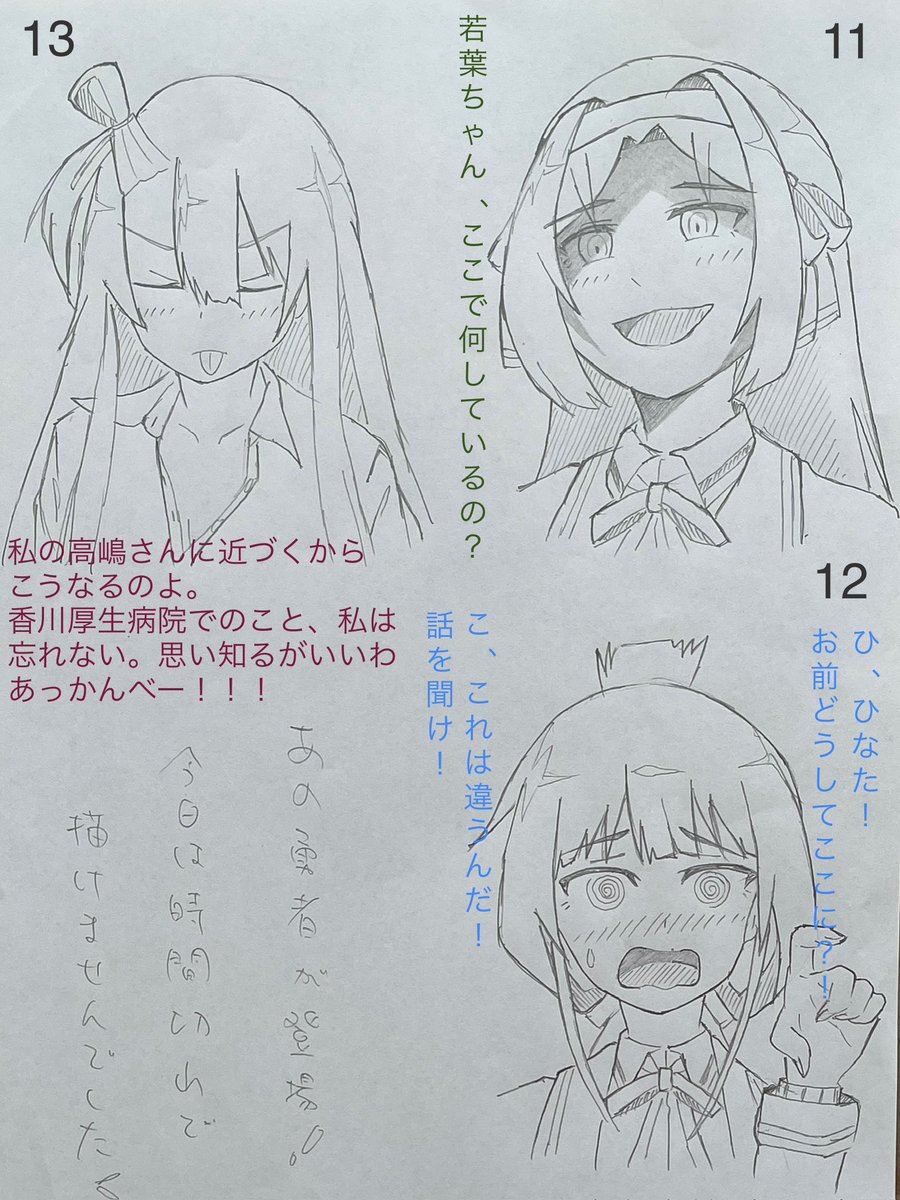 おそみもりん💦 みなさんにバレてた高嶋さんの登場です笑 途中状態の2枚だけなのでどうしようかと思いましたが、毎日あげてるので載せておきますね! 次のコマくらいまでは描きたかったけど、続きはまた明日✨ #イラスト好きな人とつながりたい #高嶋友奈