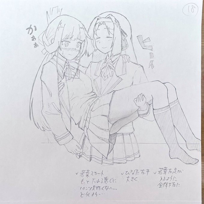 おはみもりん☁️ 今日は先日まで継続していた「郡千景は乙女である」より、反応が多かった若葉ちゃんがお姫様抱っこされるSCENEです 先日は上半分だけでしたが、各SCENEの清書に取り掛かっているので作業中の下半分もどうぞ😊 構図が難しい💦 でも若葉ちゃん可愛い🥰 #イラスト好きな人と繋がりたい