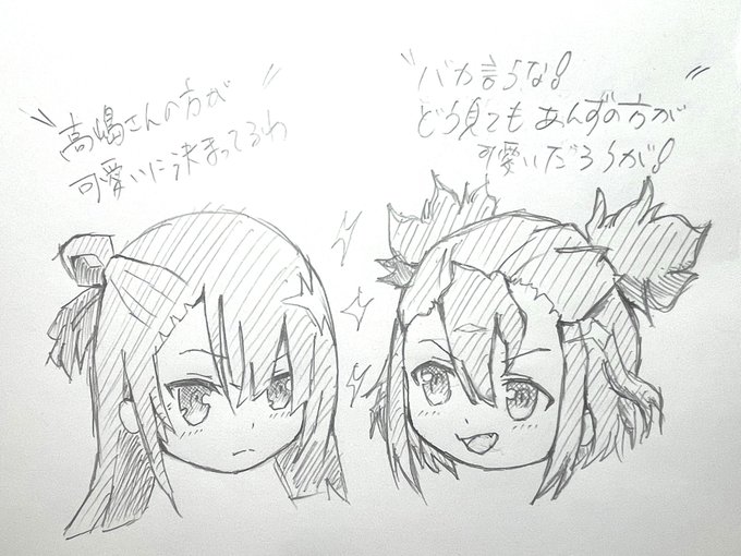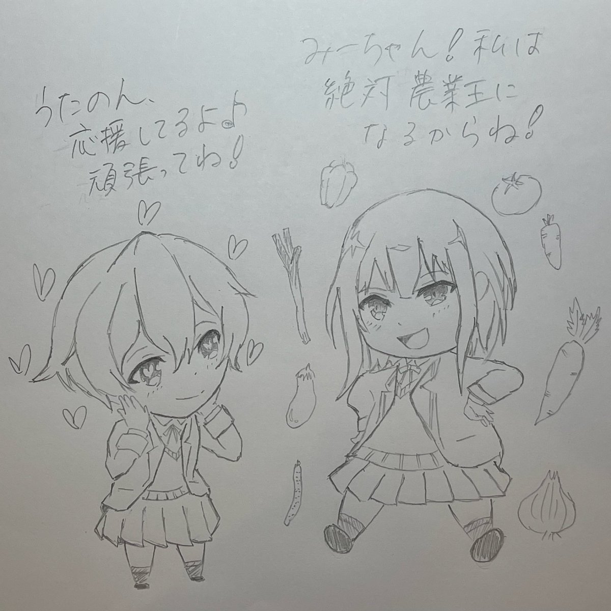 おはようございます! 今日のイラストは、昨日に続いてデフォルメシリーズのくめゆ組よりしずく&シズク🍜 この2人は特徴が分かりやすかったですね😄 並行して、リアル等身のぐんちゃんと、リクエストをいただいたタマっち先輩を進めています✨ #イラスト好きな人と繋がりたい #山伏しずく