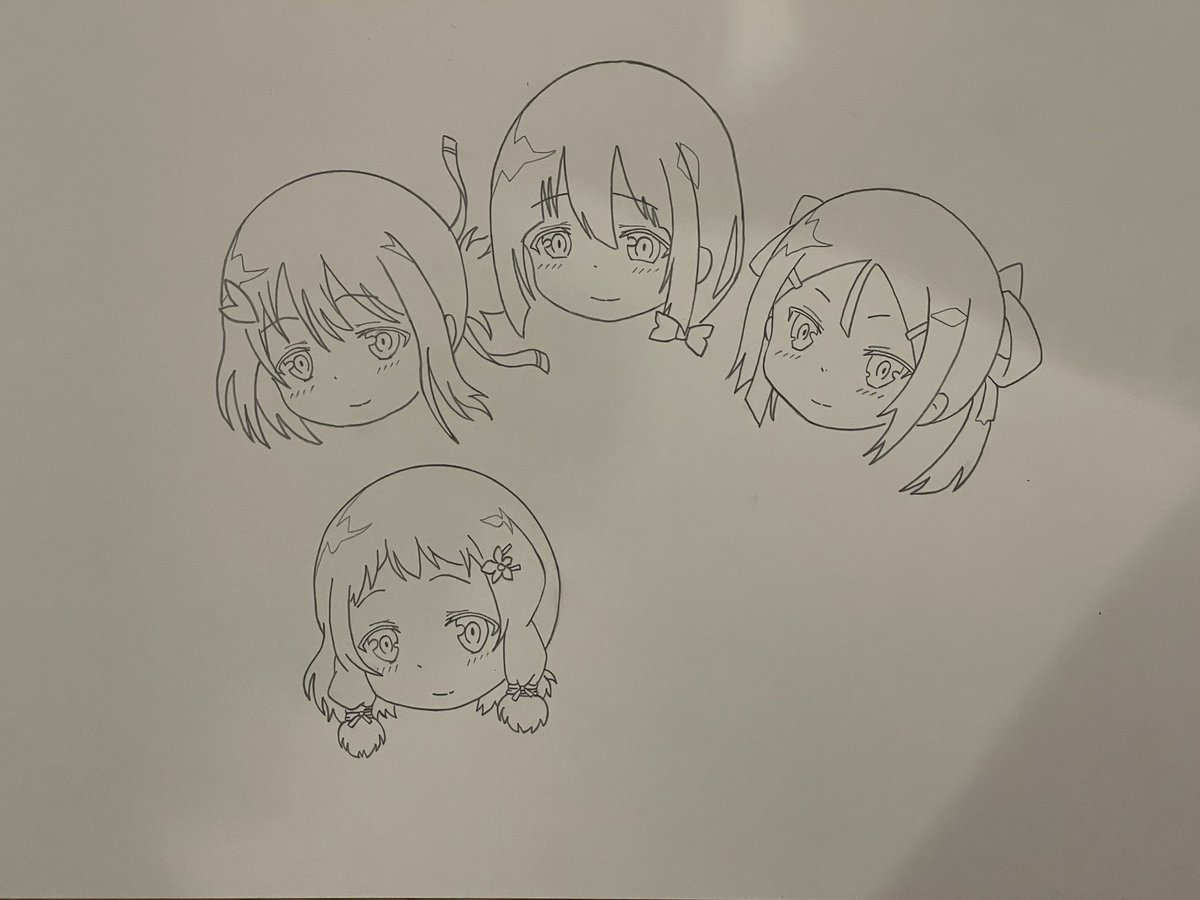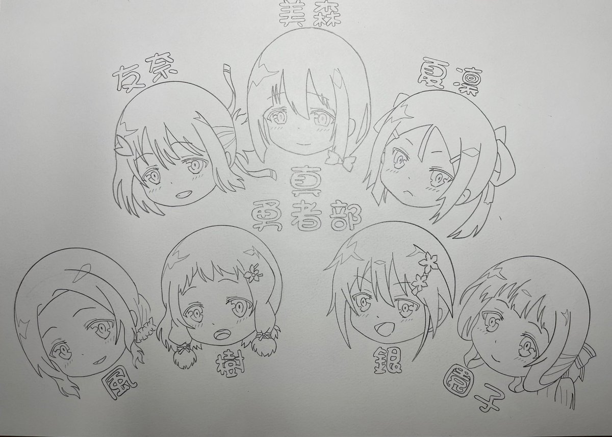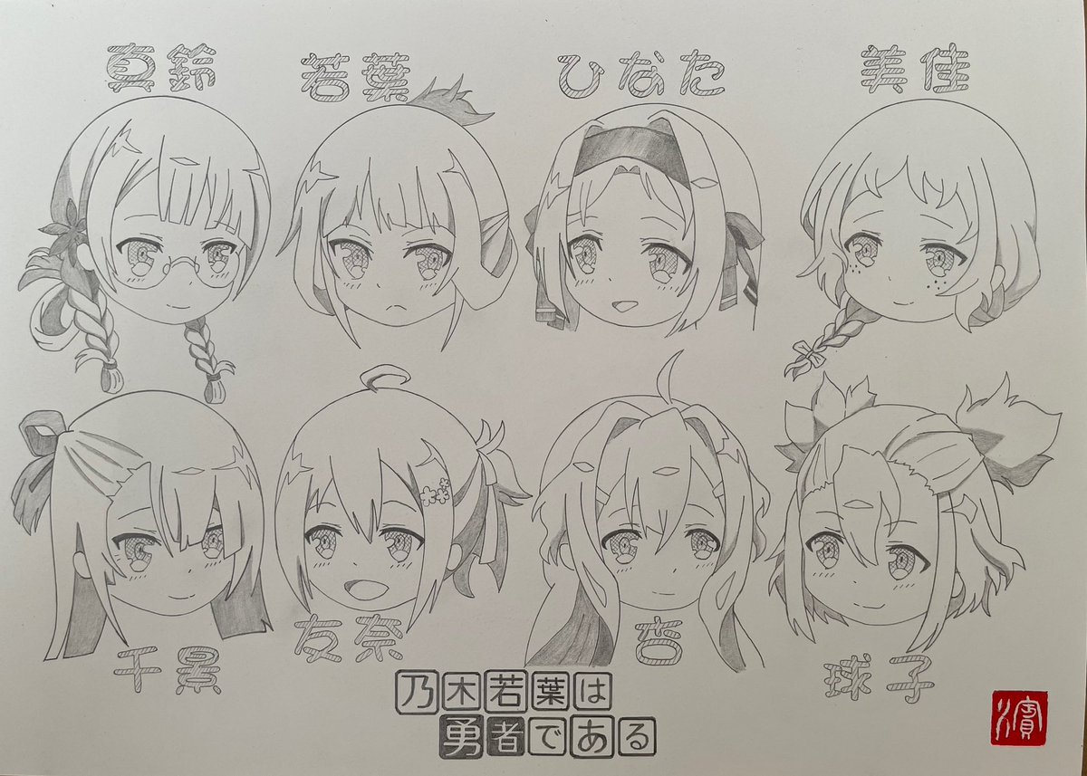 おはみもりん☀️ 随分前にhiro kunさんからリクエストいただいた 「劇中には出てこないようなメブ」 を描いてみました 最近は少し設定を付けるのが楽しくて笑 3枚目は描きかけですみません 4枚目は劇中の模写です hiro kunさんどうでしょうか? #イラスト好きな人と繋がりたい #楠芽吹 #三好夏凜