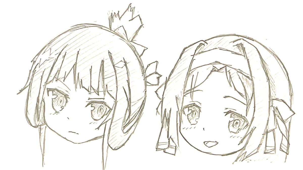 おはみもりん☀️ いつも見てくれて感謝です まだ落描きだけど今日も描きました 今日もぐんちゃん🥰 若葉ちゃんが助っ人で登場です🌱 毎日暑いので、ぐんちゃんも薄着なようです💦 ただそれだけです😅 若葉ちゃん、1人で乗り切らないといけませんね #イラスト好きな人と繋がりたい #郡千景 #乃木若葉