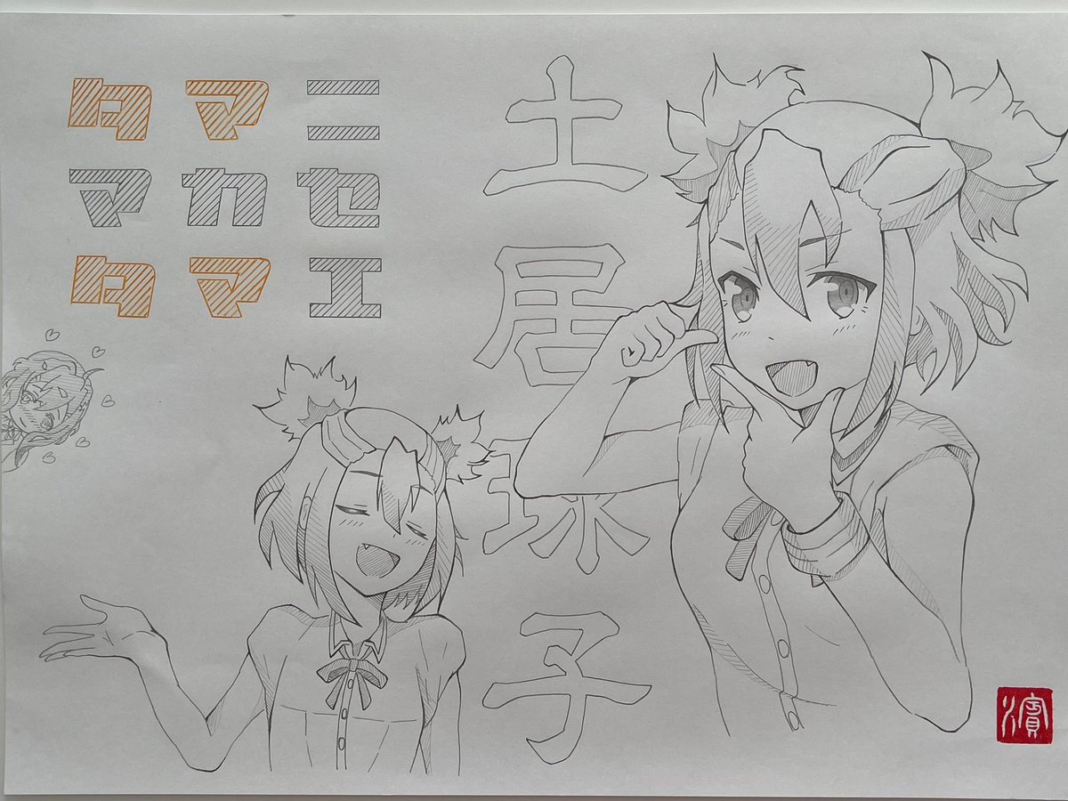 おはみもりん! 今日はご依頼頂いていたタマっち先輩🍊✨ ただタマちゃんを描くだけでなく、一枚のイラストとして少しデザインしてみました 左のタマちゃんがお気に入り☺️ 塗り潰さず斜線を使ってあっさりな感じにしました 気に入っていただけるかな🍊✨ #イラスト好きな人と繋がりたい #土居球子