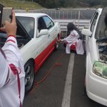 昨日のワンシーン「即売会かコスプレイベントですか?」いえ富士スピードウェイジムカコースでの走行会のワンシーンです 普通の服装の人より艦娘、提督の方が多いの笑う #提督ドラミ