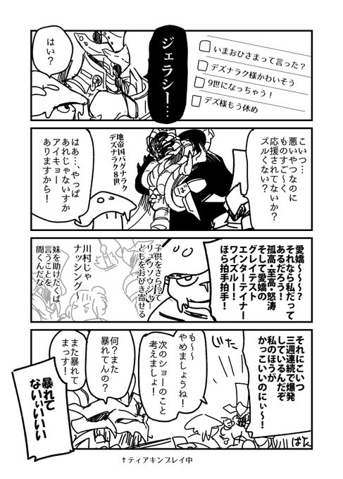 ラクレスとデズナラク、ボスキャラアフター飲みでカメジムの悪口言っててほしいねの絵
