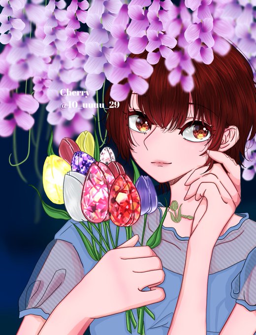6 13 藤とチューリップ⸜🌷︎⸝ #拡散希望 #デジタルイラスト #無断転載禁止 #イラスト好きと繋がりたい 22/04/21 21:01