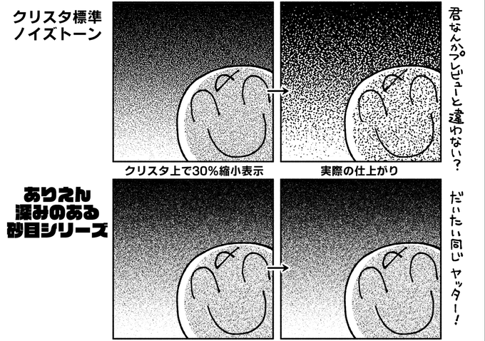 ベーシックザラザラオシャンノイズトーンの当たり判定デカすぎグラデーション版もまとめてどうぞ! 深み砂目G→assets.clip-studio.com/ja-jp/detail?i… 重み砂目G→assets.clip-studio.com/ja-jp/detail?i… #clipstudio