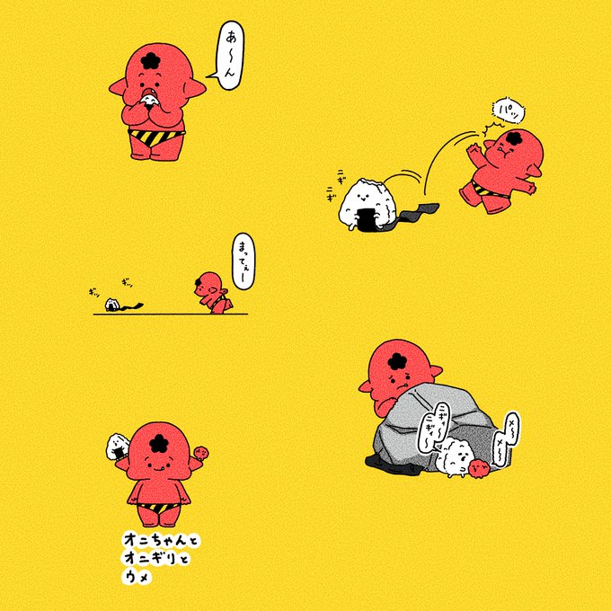 軽率な落書き オニちゃんとオニギリとウメ #イラスト #コニちゃん
