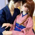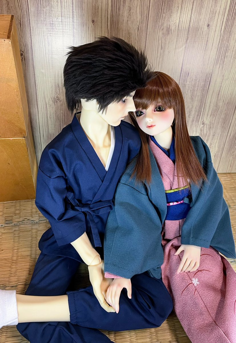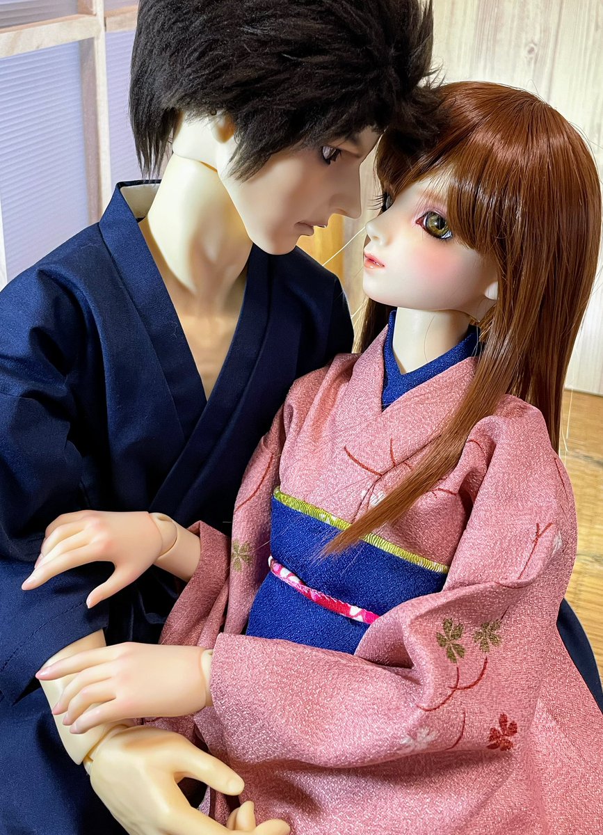 7/9のお題【 いっしょ】 ないしょの浴衣デートだから、こっそりいっしょに。 #今夜のドール撮影120分一本勝負 近藤さん 👁 #七宝グラスアイ たえちゃん 👁 #kukkaアイ 💅 #chatnoirmake