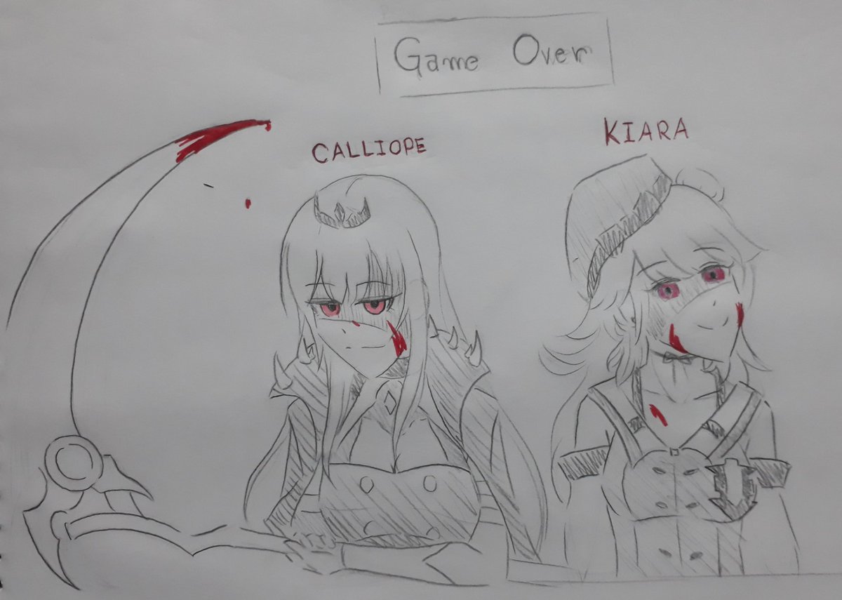 Drawing practice with Calliope, Kiara and Gura. In which sketch is always better, I can't detail and line art makes it worst. lol But here we go. #callillust #ArtsOfAshes #gurart