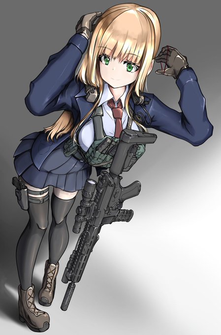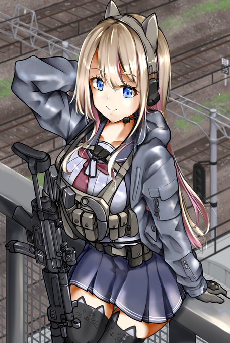 ネコミミヘッドセット武装JK #オリジナル #ミリタリー #武装JK #ニーソ #ヘッドセット #銃 #MP5 pixiv.net/artworks/10501…