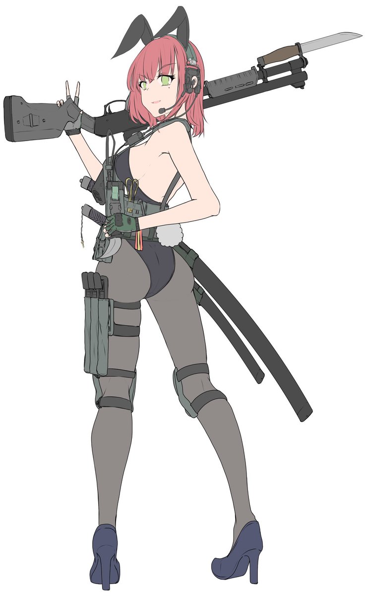 18 65 武装バニーガールBLACK #オリジナル #少女 #ミリタリー #武装少女 #バニーガール #M870 #タイツ #日本刀 #ブラックホーク pixiv.net/artworks/10150… 22/09/26 17:42