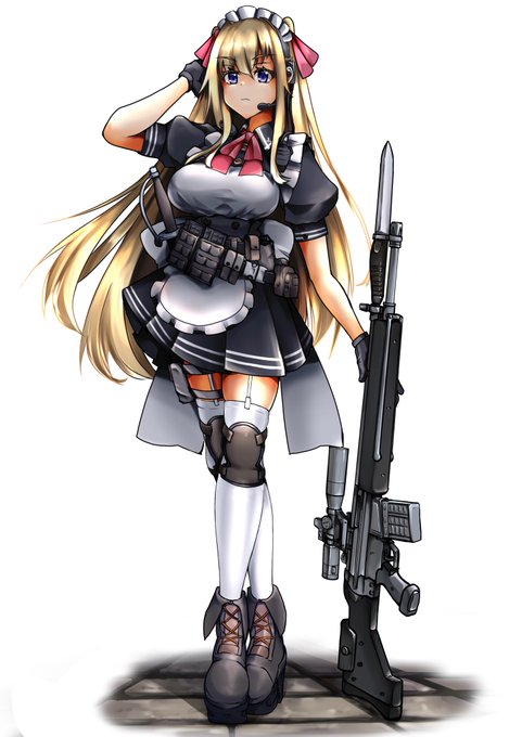 侵入者を排除する武装メイドさん #オリジナル #少女 #ミリタリー #タイツ pixiv.net/artworks/10557…
