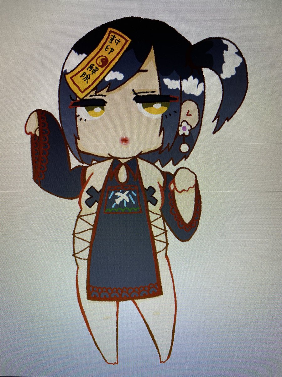 夏の新刊の1個にキョンシーROMがあるんだけど、久し振りにお絵描きした🐶 何かしらのグッズにしたいなぁとふんわり思ってるけど納期…… アクキーと缶バッジならどちらが宜しいのだろうか……
