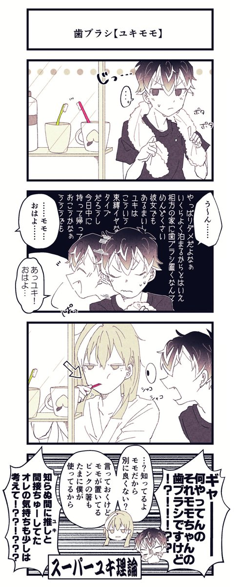 ユキの家に歯ブラシ置いてるモモの付き合ってないユキモモ漫画です