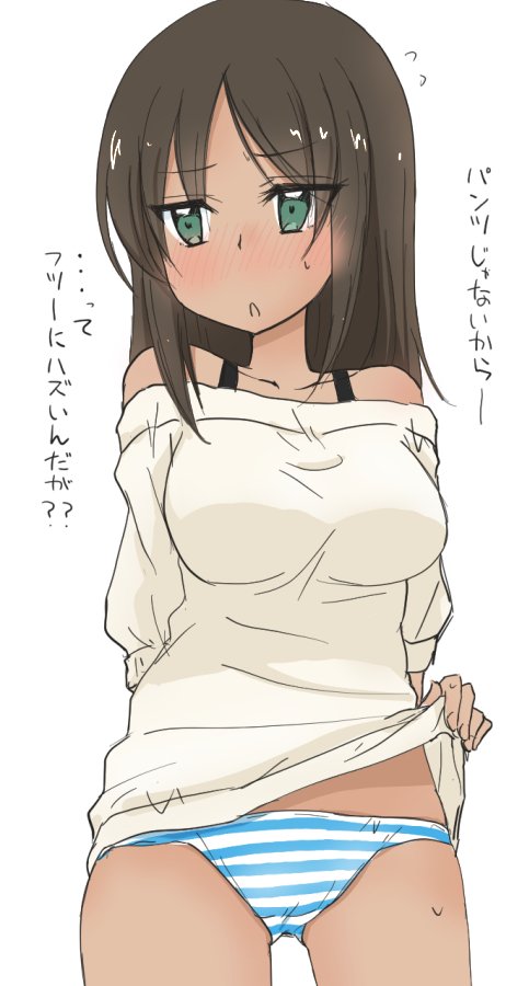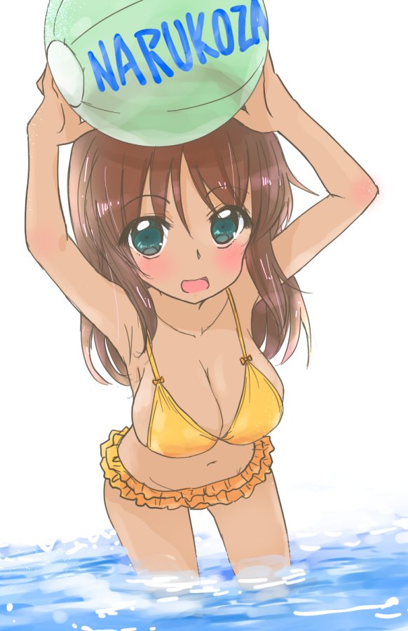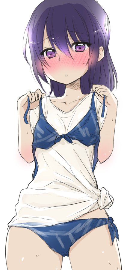 大きいのが好きなお嬢に、サイズ大きめの水着を着てもらうの図