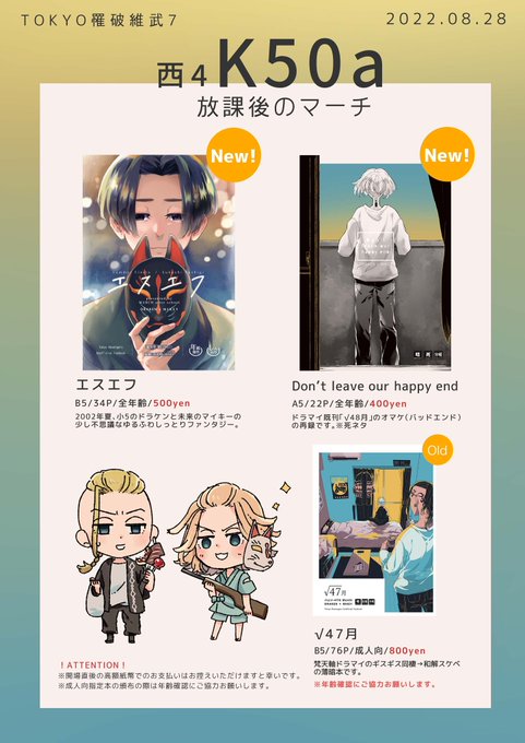 【8/28罹破維武勇7】お品書き | ほとり #pixiv pixiv.net/artworks/10080… ギリギリすぎですが、明日のお品書きです。全部ドラマイです。よろしくお願いします!