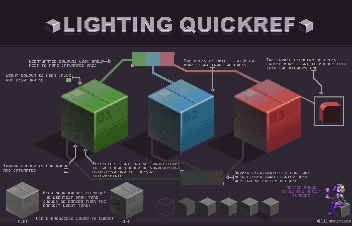 241 1120 Quick reference on how to render more three dimensional lighting. Might make more tutorials if this is useful. #pixelart #ドット絵 #tutorial 21/03/02 01:55