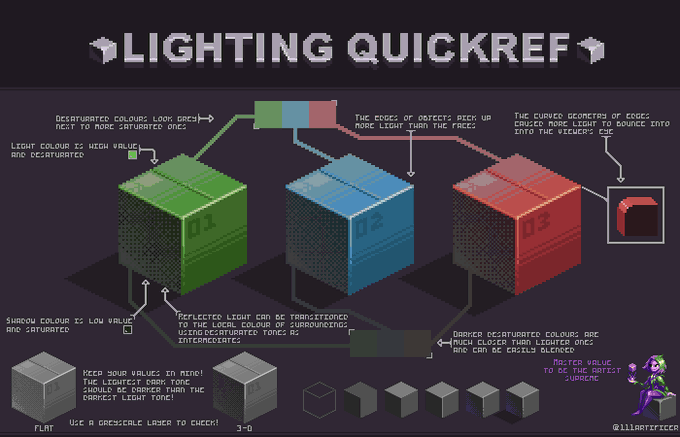 Quick reference on how to render more three dimensional lighting. Might make more tutorials if this is useful. #pixelart #ドット絵 #tutorial