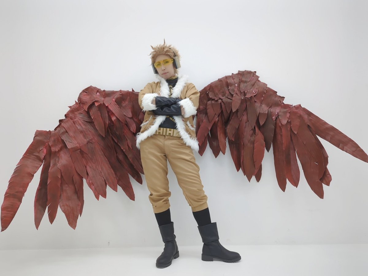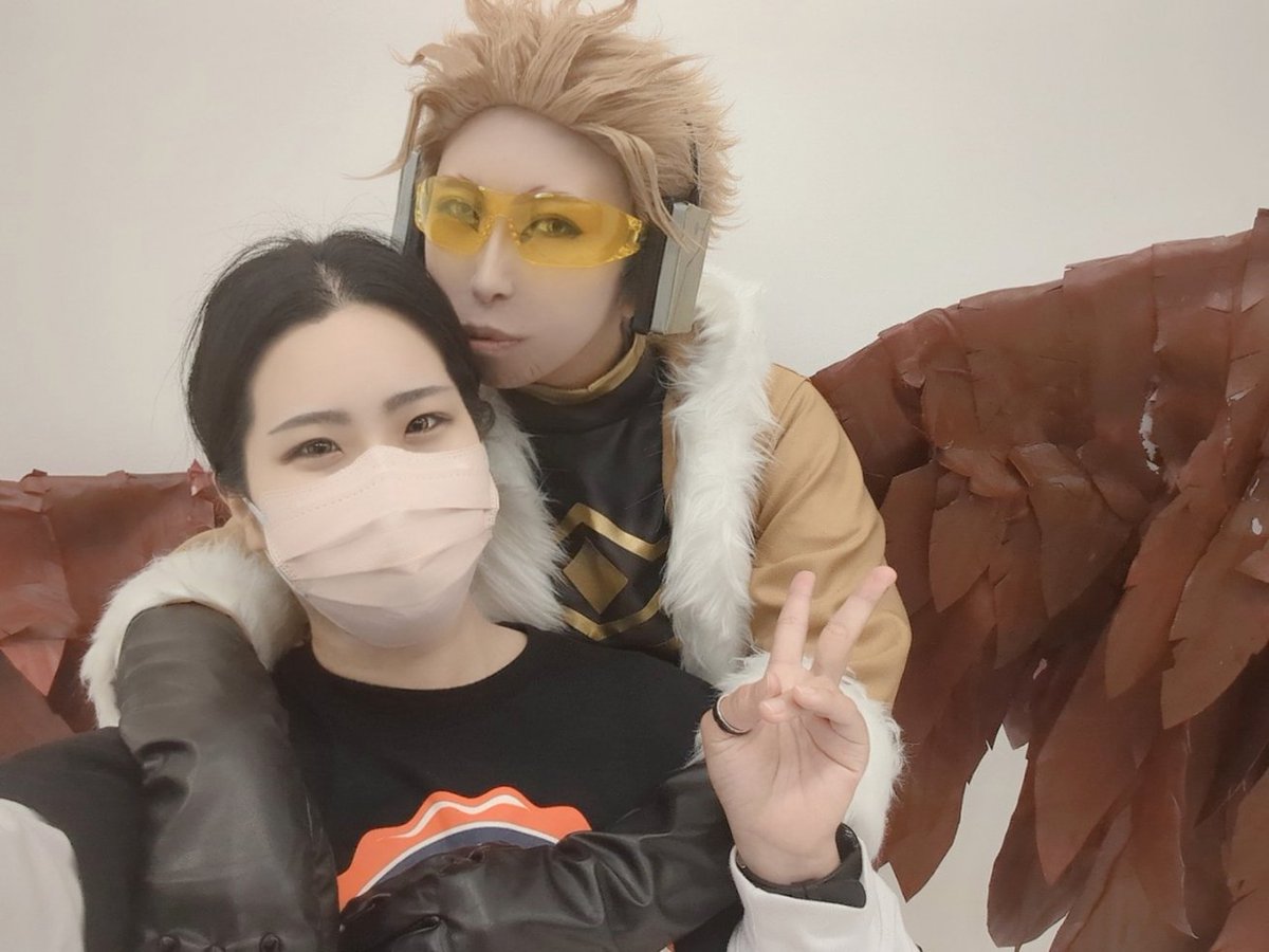 昨日スタジオで念願のホークスしてきた🦅 羽根は大天才ナツさん(@natsuppoi)が作ってきてくれて装着までしてくれました!!!! 私は兎も角才能マンの天才的な羽根見てくれ✨ ホークス出来たのめちゃくちゃ嬉しかったし楽しかった🥰💕