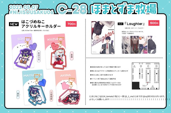 #にじそうさく05 おしながき 明日!新刊と名刺があります 売り子と一緒に感染対策バチバチでお待ちしていますよろしくお願いします~~~ BOOTH通販ページ→tomatocat.booth.pm/items/2452283