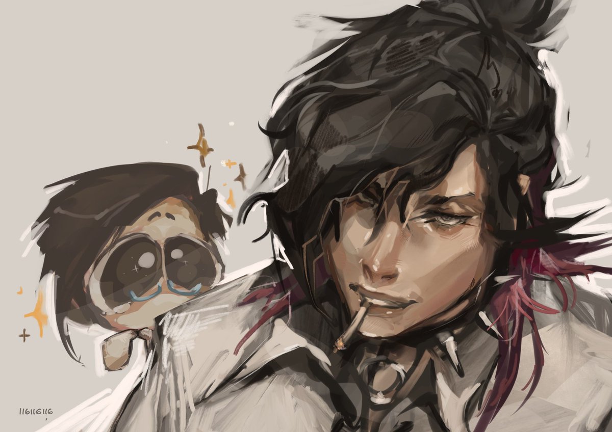 Attempt n.2 of drawing Ethan (ft. Puppy Streb) I don't think I've catched his vibe yet 😩 (Also I didn't know he had GREY eyes, how tf did you guys find it out already) #spookymonth #spookymonthfanart #spookymonthethan