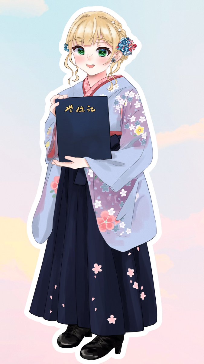 #アキくんちゃんアート ずっと描きあげたかったやつ!ついに!完成! 時期は過ぎてしまいましたが、私が卒業式に着たものをアキくんにも着て欲しかったんです🌸かわちいね〜!